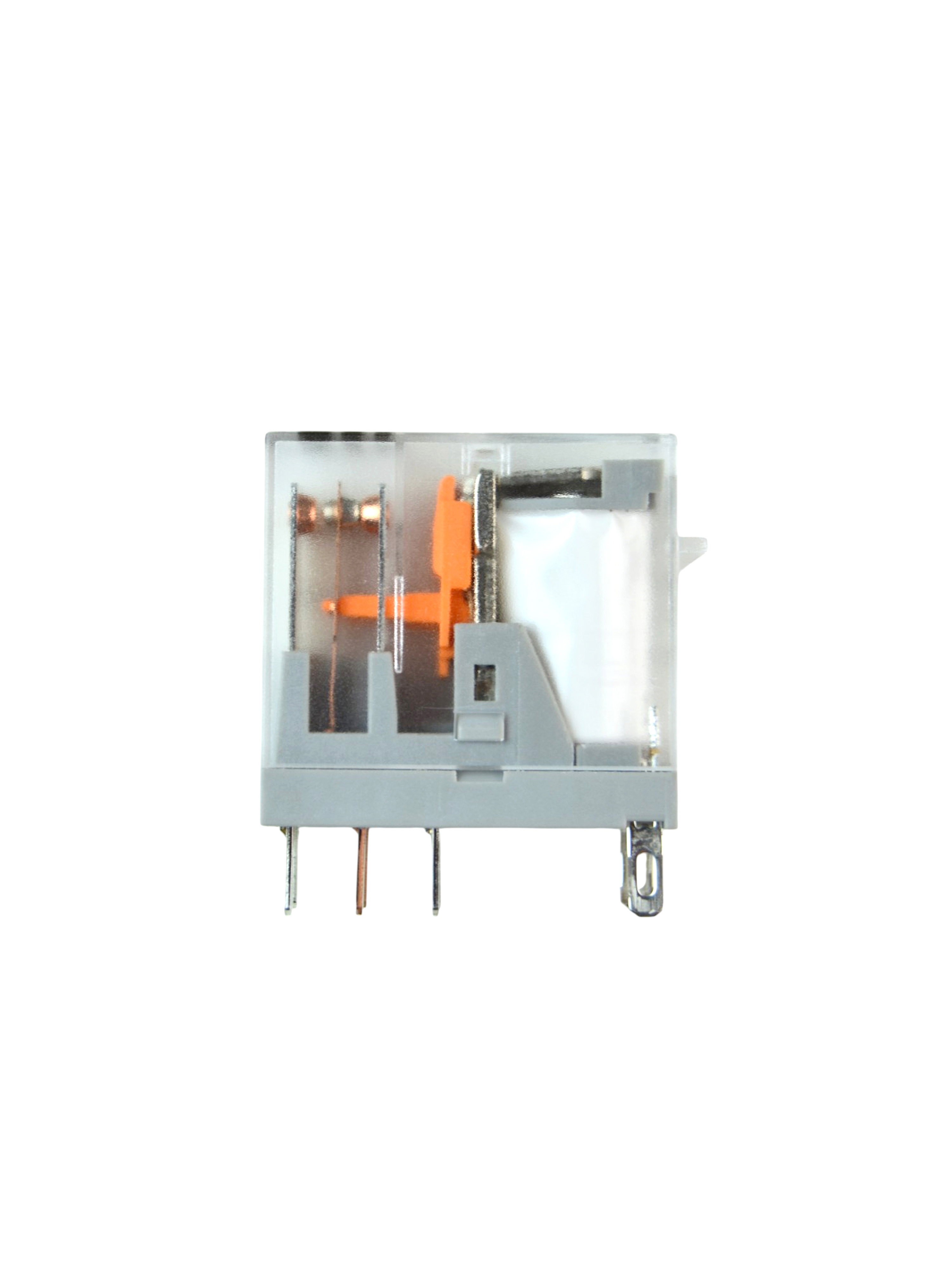Реле с двумя перекидными группами контактов — 2 НО + 2 НЗ. Контактная группа с серебряным покрытием снижает переходное сопротивление и риск слипания/прогорания, повышая ресурс коммутаций. Корпус выполнен из термостойкого диэлектрика, что обеспечивает стабильную работу при повторных срабатываниях и в плотных щитовых сборках.