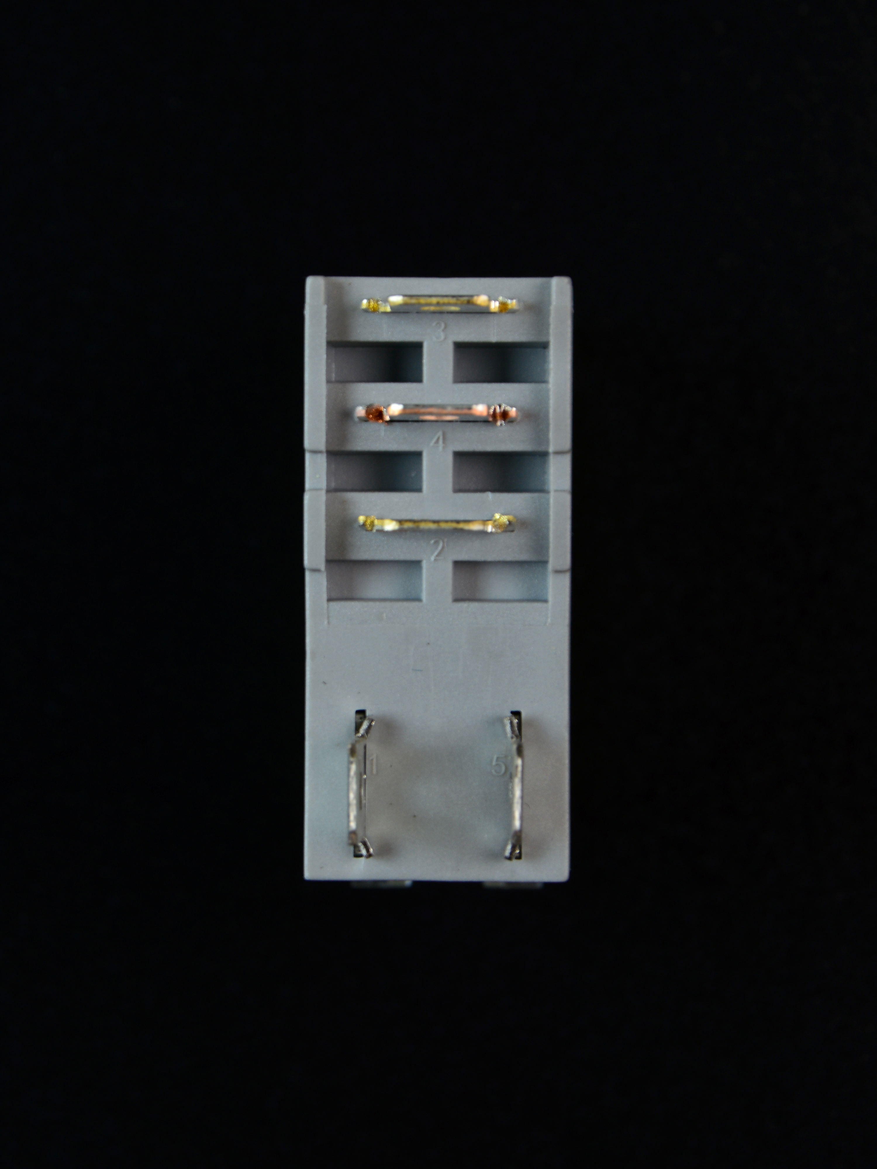Компактное реле с светодиодной индикацией состояния катушки и рычагом теста для оперативной проверки схемы без подачи управляющего сигнала. Схема контактов — 1 перекидной (1Z): один НО и один НЗ. Контактные площадки имеют серебряное покрытие, что снижает переходное сопротивление и риск подгорания при нагрузках, повышая ресурс коммутаций и стабильность срабатывания.