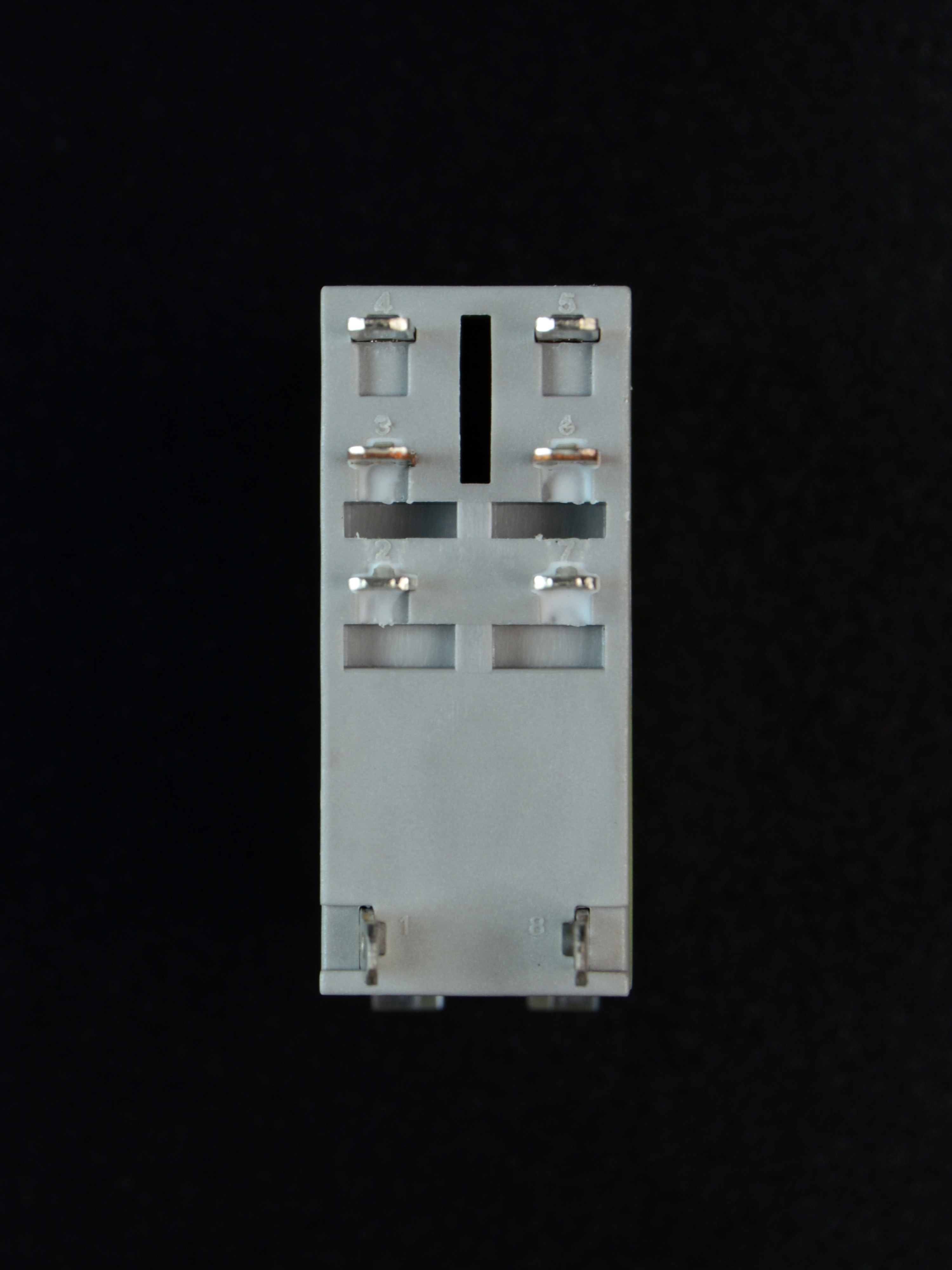 Реле с двумя перекидными контактами два НО и два НЗ, оснащено LED-индикацией состояния катушки и рычагом теста для быстрой проверки схемы без подачи управляющего сигнала. Контактная группа с серебряным покрытием снижает переходное сопротивление и риск подгорания, повышая ресурс и стабильность коммутации.
