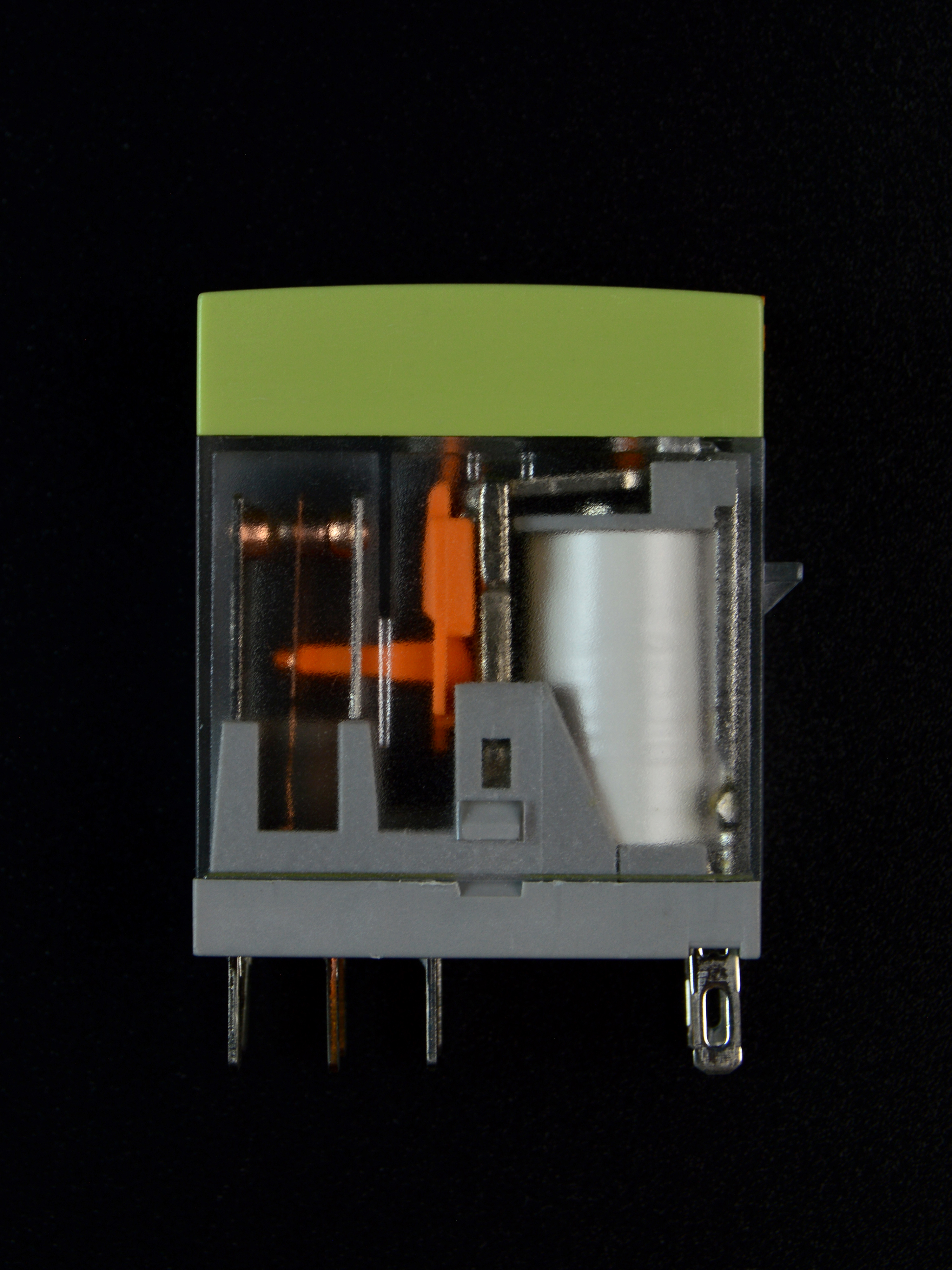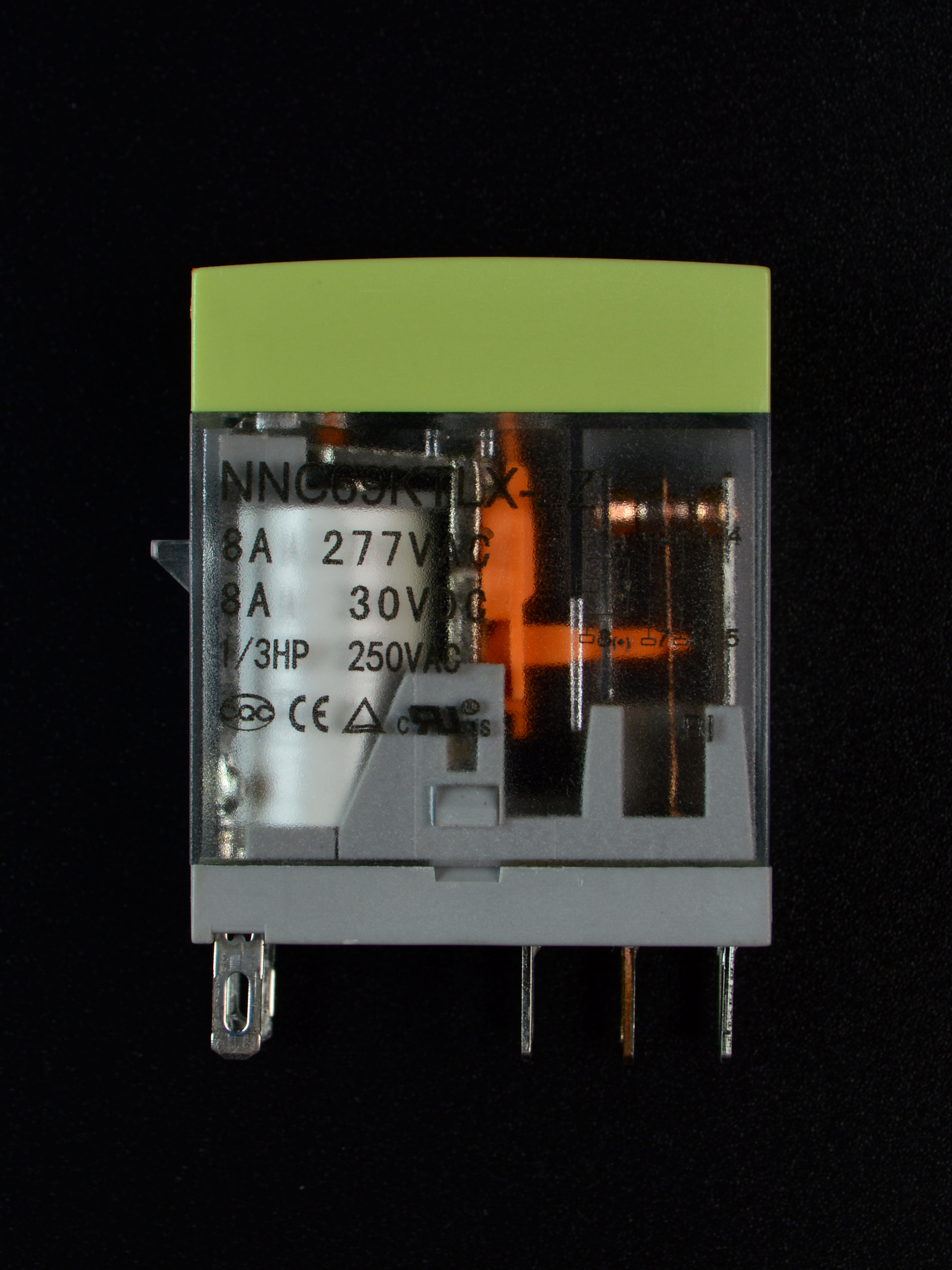 Двухконтактное электромеханическое реле (2Z/DPDT) с индикацией и тестовым рычагом