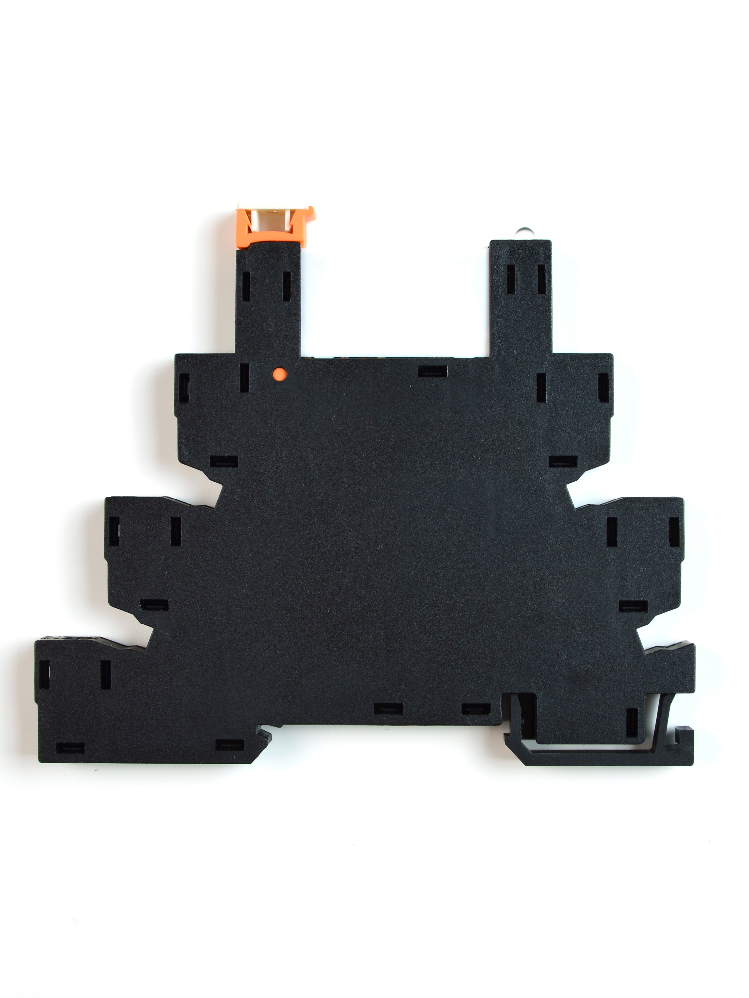Ультратонкий модуль «реле + колодка» для развязки и усиления выходов ПЛК. Питается от 24 V AC/DC, имеет индикацию срабатывания (LED) и устанавливается на DIN-рейку 35 мм. Узкий корпус ≈ 6.2 мм экономит место в шкафу, а винтовые клеммы упрощают подключение в стеснённых сборках. Поставляется в сборе с основанием P41F05-E.