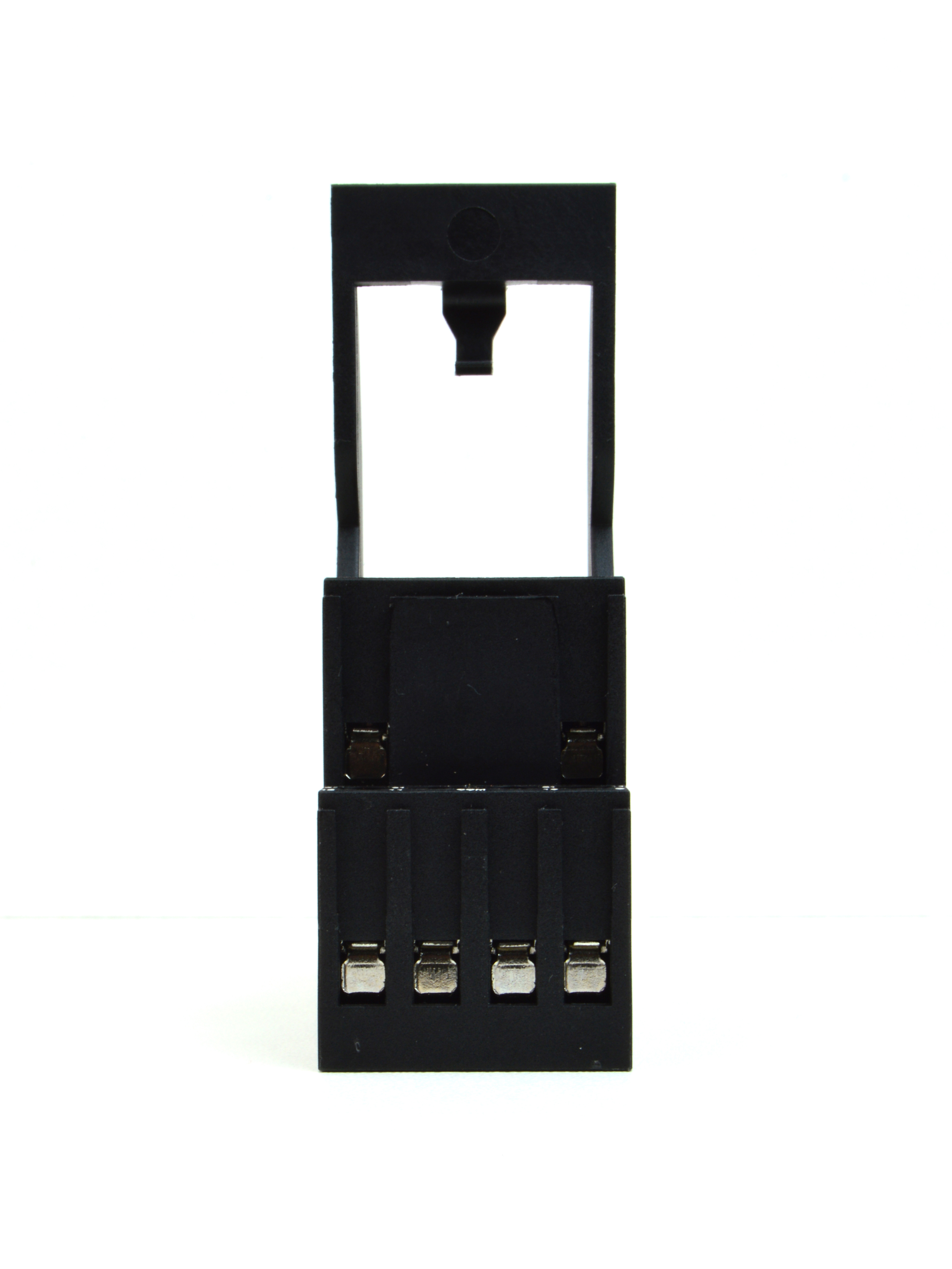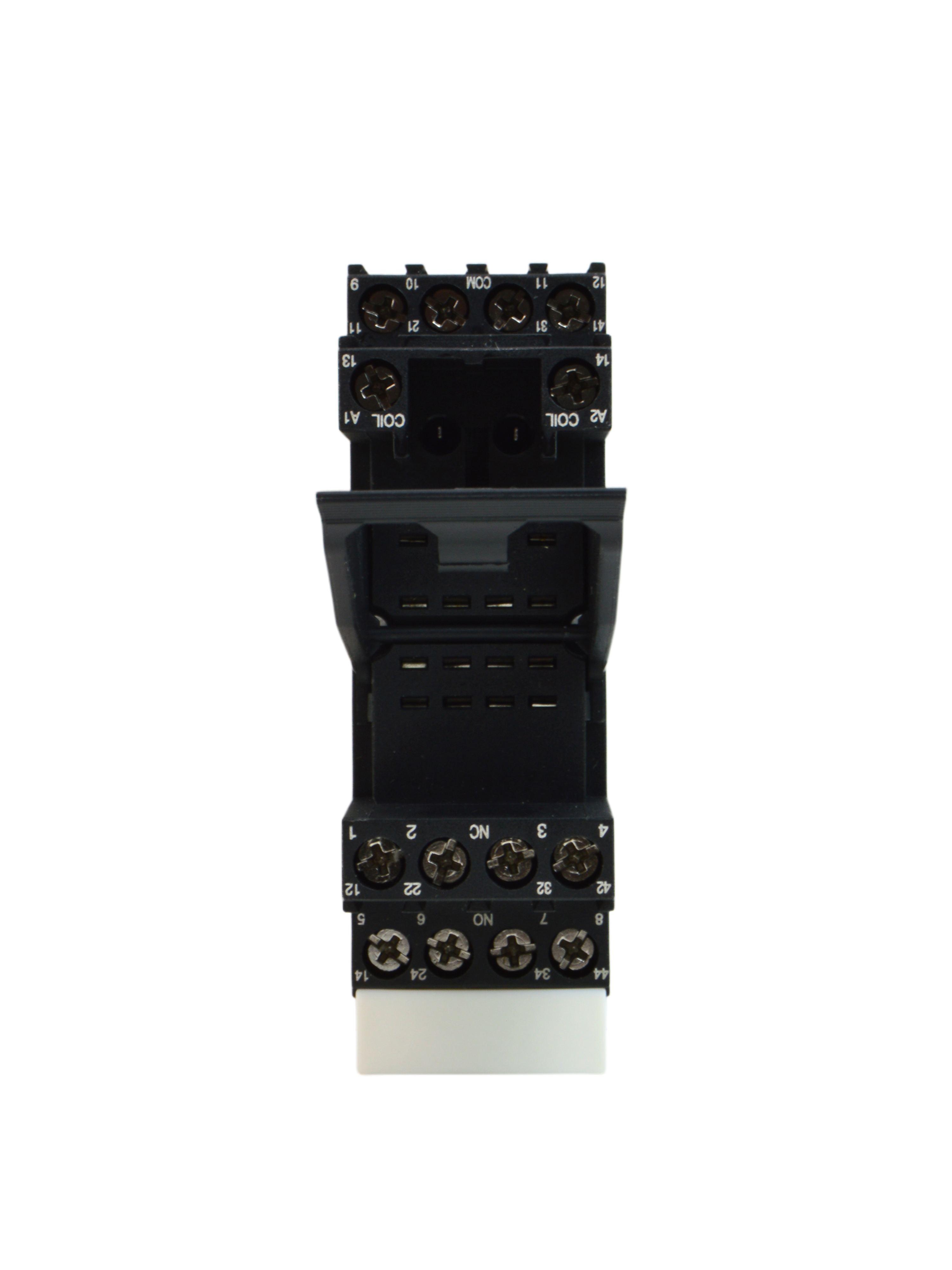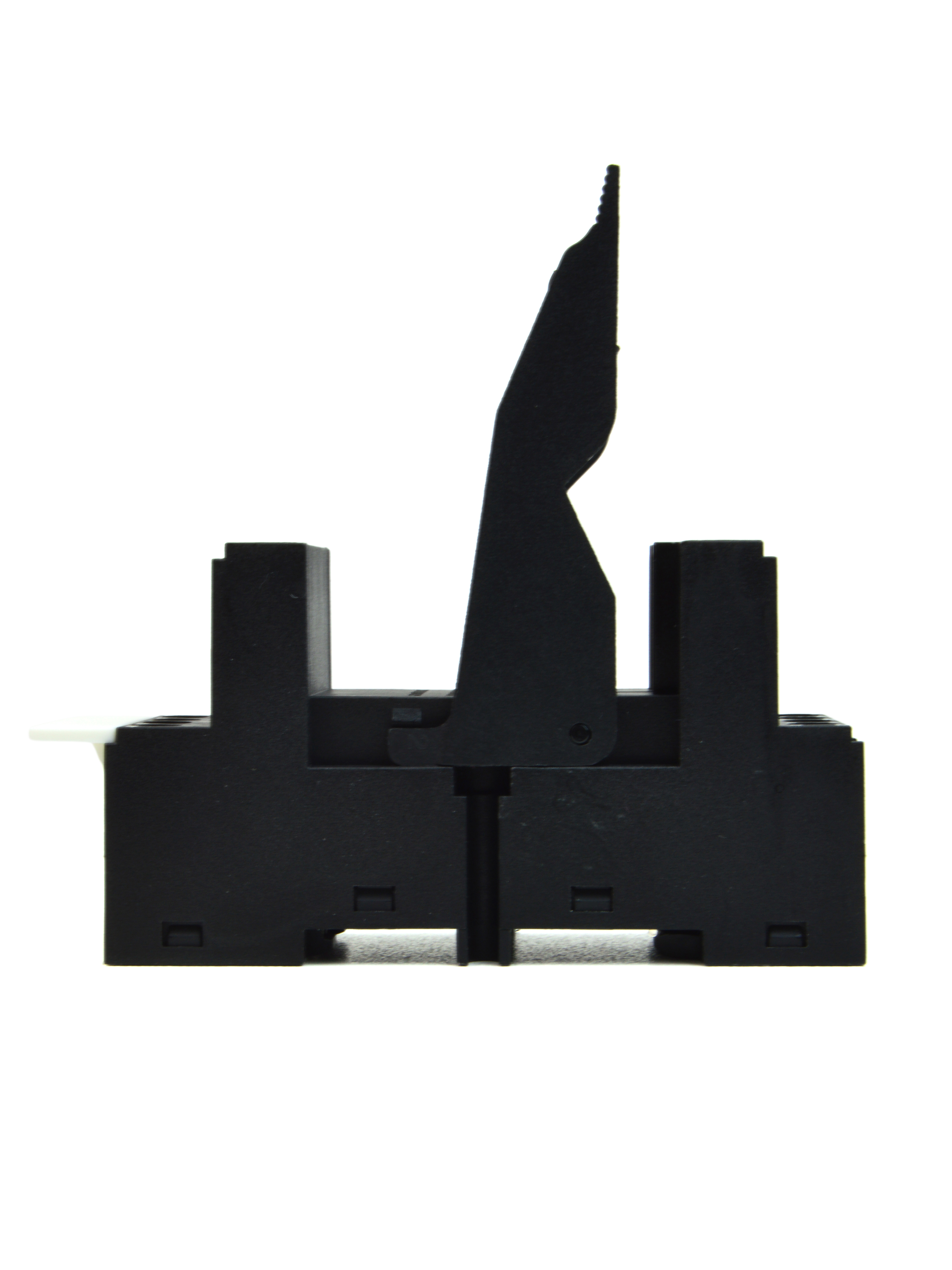 PYF14A-E2 — стандартная двухуровневая колодка для четырёхконтактных реле типа 4PDT (14 pin) семейства MY4. Конструкция рассчитана на фронтальное подключение и монтаж на DIN-рейку 35 мм; винтовые клеммы обеспечивают надёжный контакт и удобны при сервисе. Предусмотрен фиксатор (держатель) реле, который предотвращает отщёлкивание при вибрациях и ускоряет замену.
