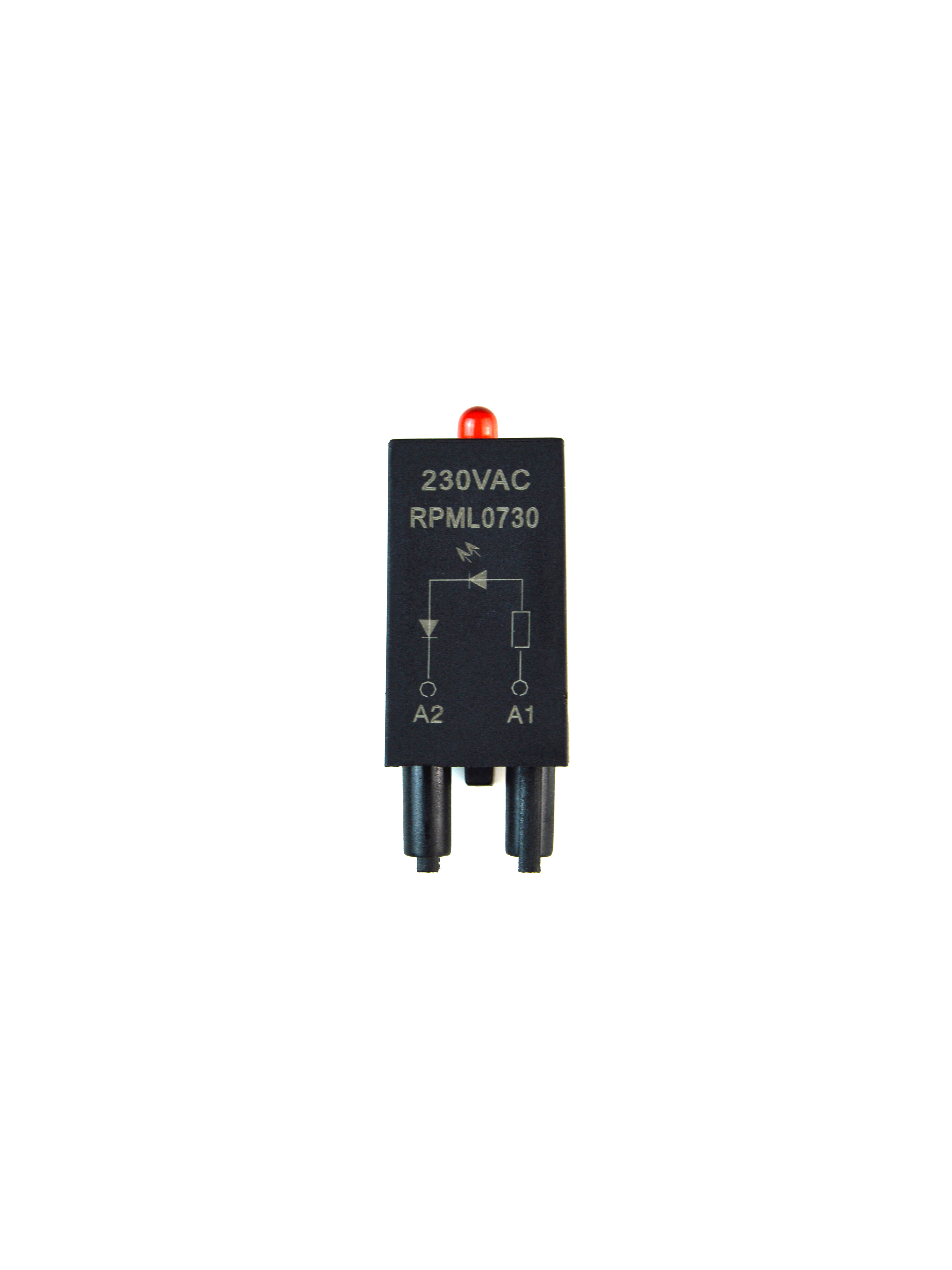 Диодный модуль индикации и защиты для реле с катушкой управления 220 VAC. Совместим с колодками серии 14F, PYF, P69F05S. Используется для подавления ЭДС самоиндукции катушки при отключении питания (защищая выходы ПЛК/транзисторные ключи) и отображает состояние реле с помощью встроенного LED-индикатора.